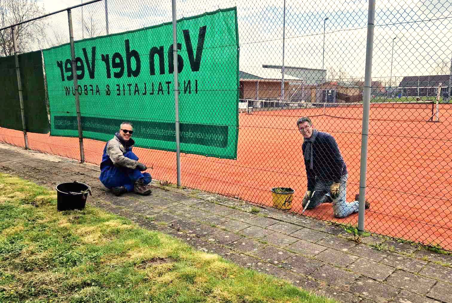 De wel aanwezige klussers zijn zaterdag 8 april 2023 hard aan de slag gegaan met het verwijderen van onkruid rond de tennisbanen. Jeugdlid Gerben Hannema maakte een heel stuk van de tegels voor de kantine schoon. ,,Dat is goed te zien als je de foto’s ziet van voor en na het verwijderen van het onkruid. Dan zie je hoe nodig zo’n klusdag is en het geeft ook voldoening.’’ Overigens lukte het niet om alle onkruid te weghalen.