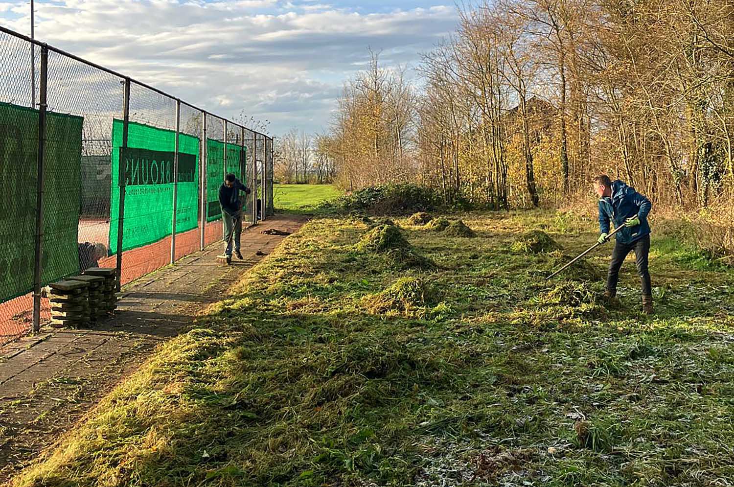 Een aantal leden van het bestuur heeft op het gaashek langs baan een maairand gemonteerd, zodat deze minder snel vergroent door gras vanaf het voetbalveld. Ook worden daarmee de kunstmestkorrels, die over het trainingsveld van de voetbalburen worden gestrooid, grotendeels tegengehouden.