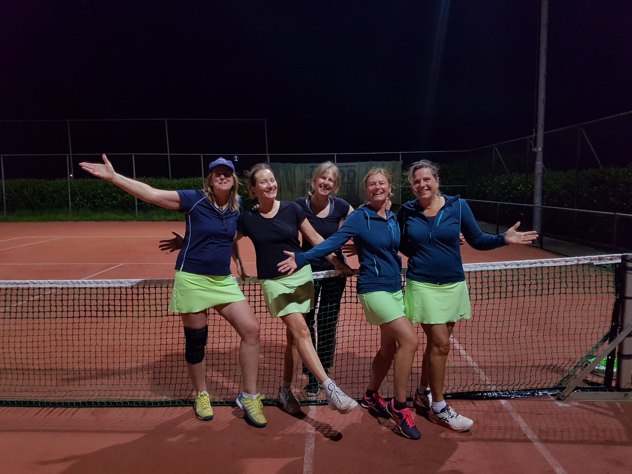 Het dames dubbelteam op dinsdag, onder leiding van Gezina Koning, kroonde zich tot kampioen in de derde klasse. Een knappe prestatie, waarmee het team volgend seizoen promoveert naar de tweede klasse.