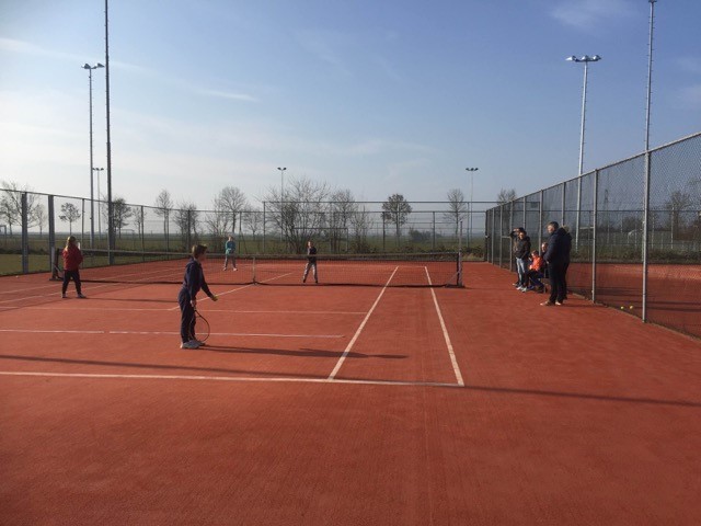 Op zondag 6 maart is de worldtour voorjaarscompetitie voor de jeugd gestart. Elke speeldag staat in het teken van een echt worldtour toernooi en zo kon het dat in Akkrum afgelopen zondag het Indian Wells toernooi werd gespeeld door de teams oranje 2 van TV Akkrum, TV Joure en Ten Woude. Het oranje-team bestond uit Kai Dokkum, Linde de Deugd, Folmer Hannema en Aiden Hooghiemster. Bij aanvang ’s ochtends om 09.00 uur waren de banen nog wit uitgeslagen van de kou, maar de zon deed dat al snel verdwijnen. De spelers, 16 in totaal, hebben in 6 rondes enkels en dubbels gespeeld. De kinderen spelen niet in games en sets, maar om 2 gewonnen tie-breaks. De telling was aan het begin van de ochtend soms nog even lastig, maar werd met de hulp van ouders langs de lijn snel opgepikt. Er is met veel enthousiasme en inzet heel sportief gespeeld!