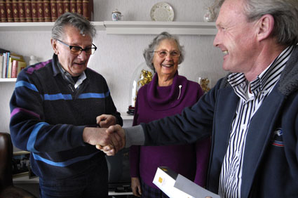 krijgt uit handen van voorzitter Jan Vrielink een presentje