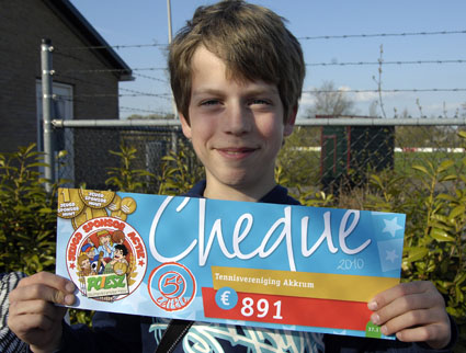 van 891 euro voor de jeugd van Tennisvereniging Akkrum opgeleverd. Met