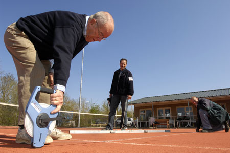 keuren tennisbanen goed![]() De splinternieuwe ProVisionbanen van Tennisvereniging Akkrum zijn goedgekeurd. Medewerkers van het Instituut voor Sportaccommodaties, die als onderdeel van NOC/NSF namens de aangesloten sportbonden keuringen uitvoert, konden geen mankementen vinden. Zowel de afmetingen van de banen, de belijning als horizontale ligging waren volgens de ISA-inspecteurs goed. Wel is uitloop van twee banen met zes meter korter dan de officiële 6,40 meter, maar daarvoor kan de club dispensatie aanvragen. Dat manco is een erfenis uit het verleden toen de normen anders waren. Tennisvereniging Akkrum is de eerste club in Friesland met goedgekeurde ProVisionbanen, die dank zij de kunstgrasmat met daarop een laag keramisch gravel ook in de winter bespeelbaar zijn. Op de foto meet ISA-inspecteur Dick Fröling (l) samen met Norbert Stuip van Ingenieursbureau Oranjewoud de belijning op. ISA-inspecteur Johan Kammen heeft de rei in de hand waarmee de vlakheid van de banen over korte afstand wordt gemeten. Voor langere afstanden wordt laserapparatuur gebruikt. Foto: Persbureau Noordoost/Alex J. de Haan Geplaatst op dinsdag 22 april 2008 |
